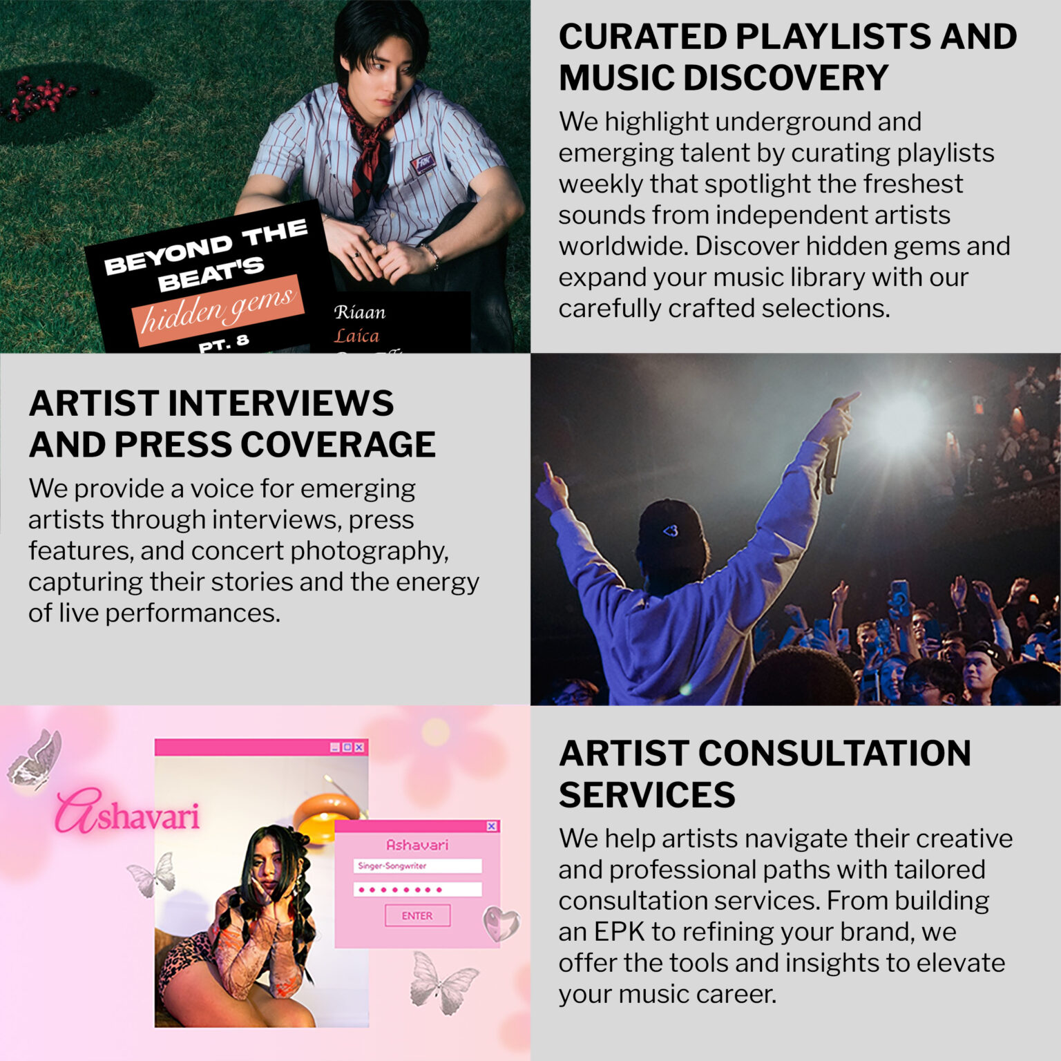 B-Side Rituals strives to be the most inclusive music organization, particularly by elevating smaller and BIPOC artists. Recognizing the challenges of starting out in the industry, we aim to provide support and assistance to emerging talents on their journey.