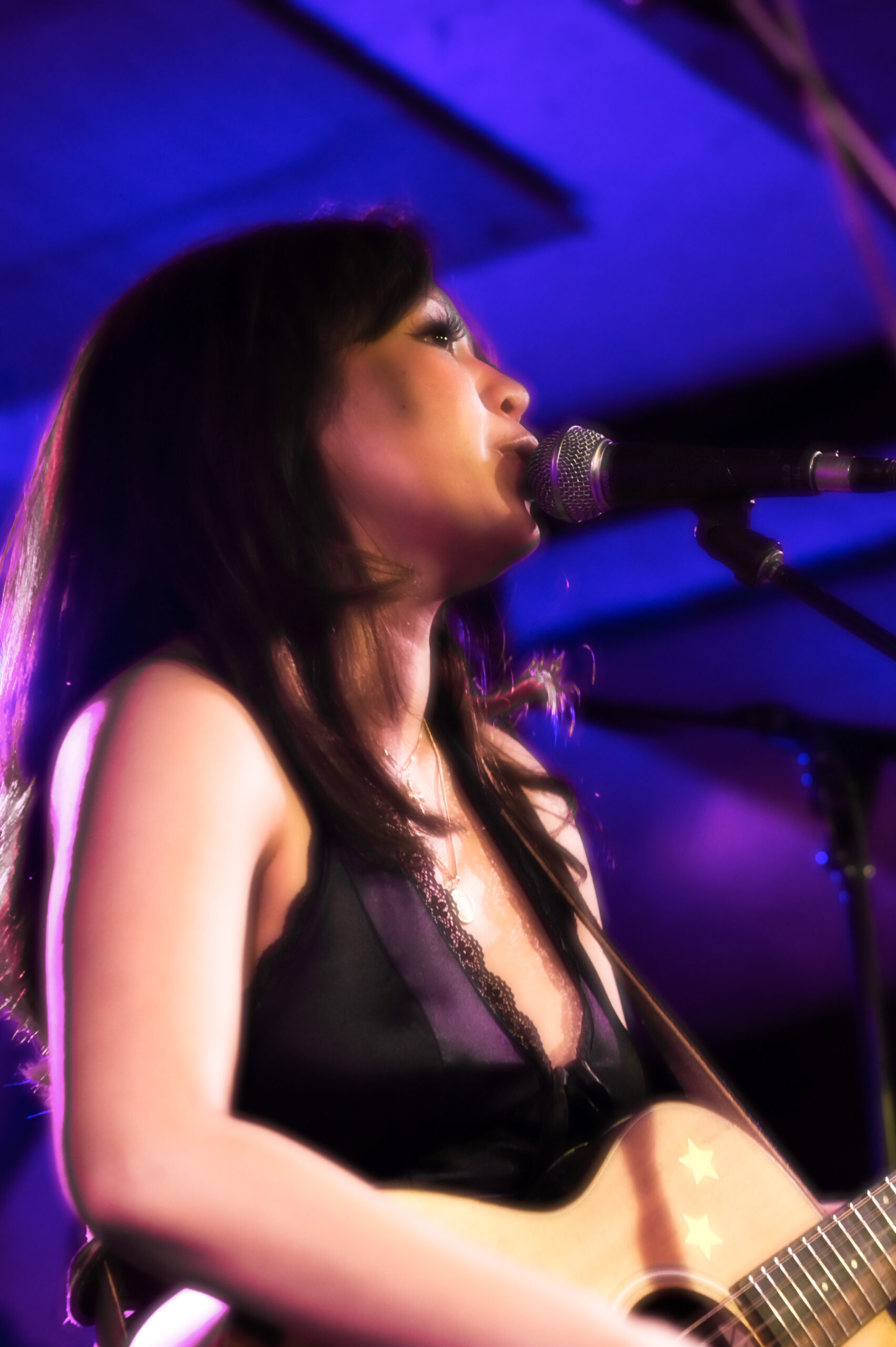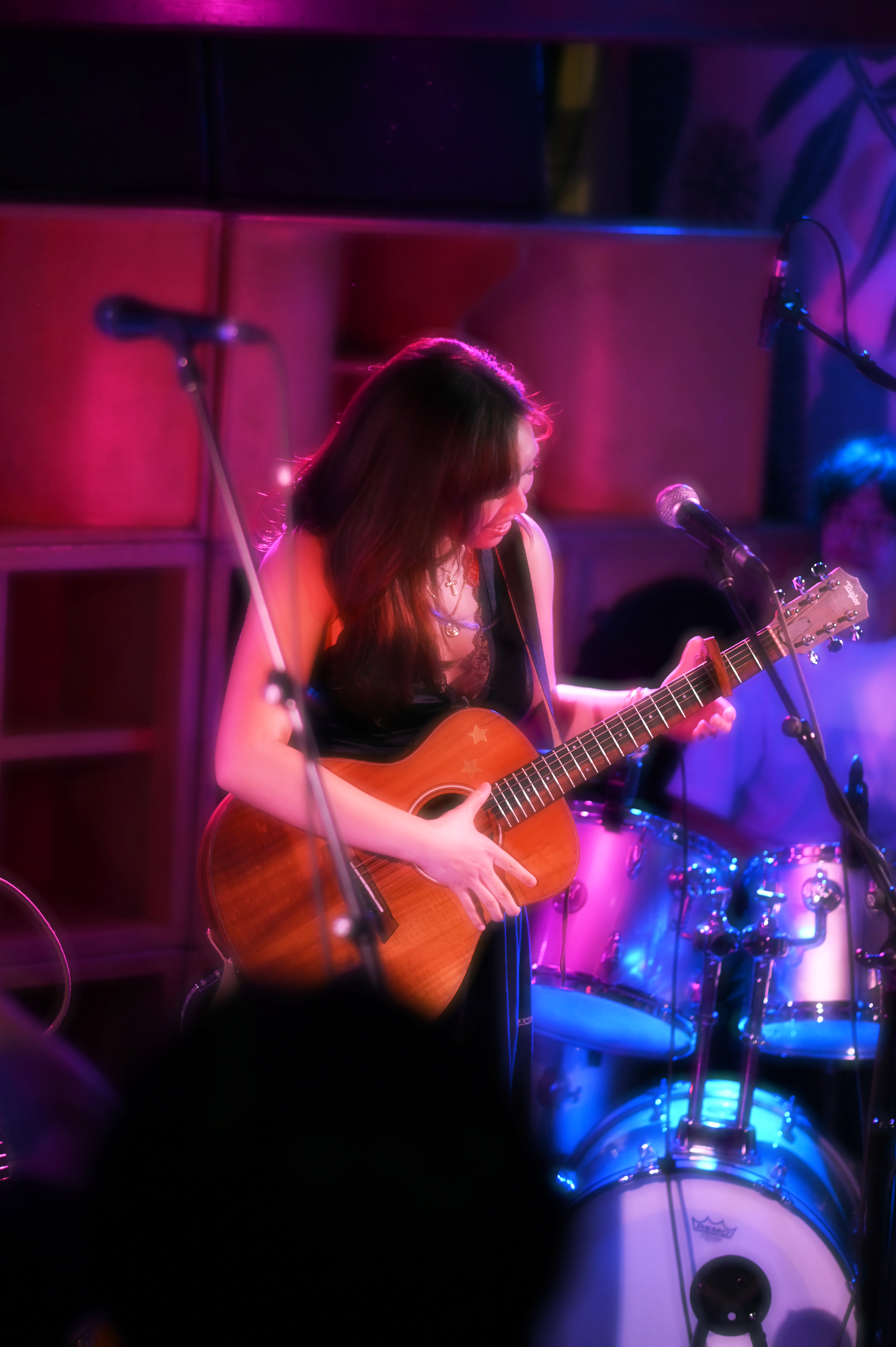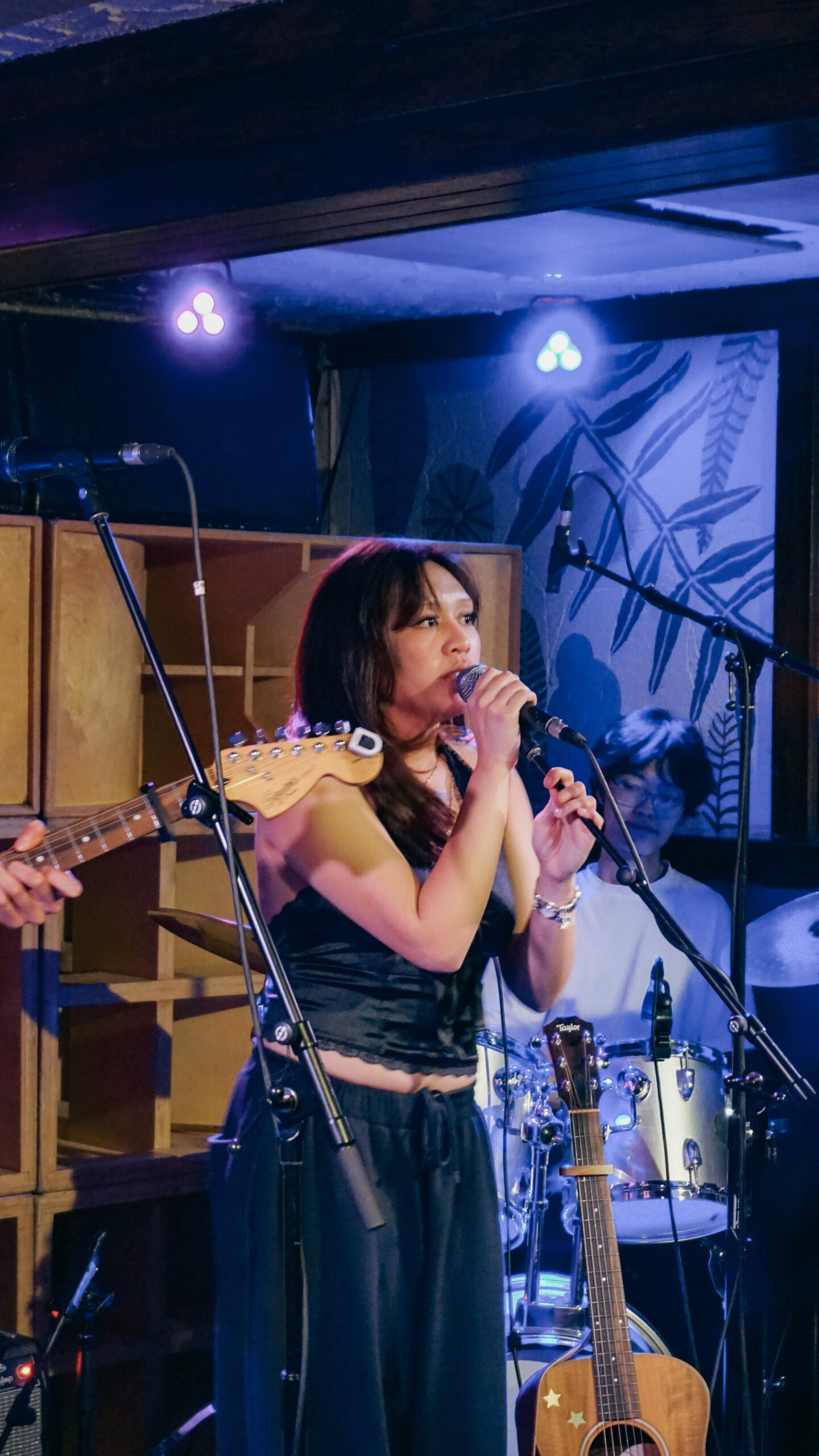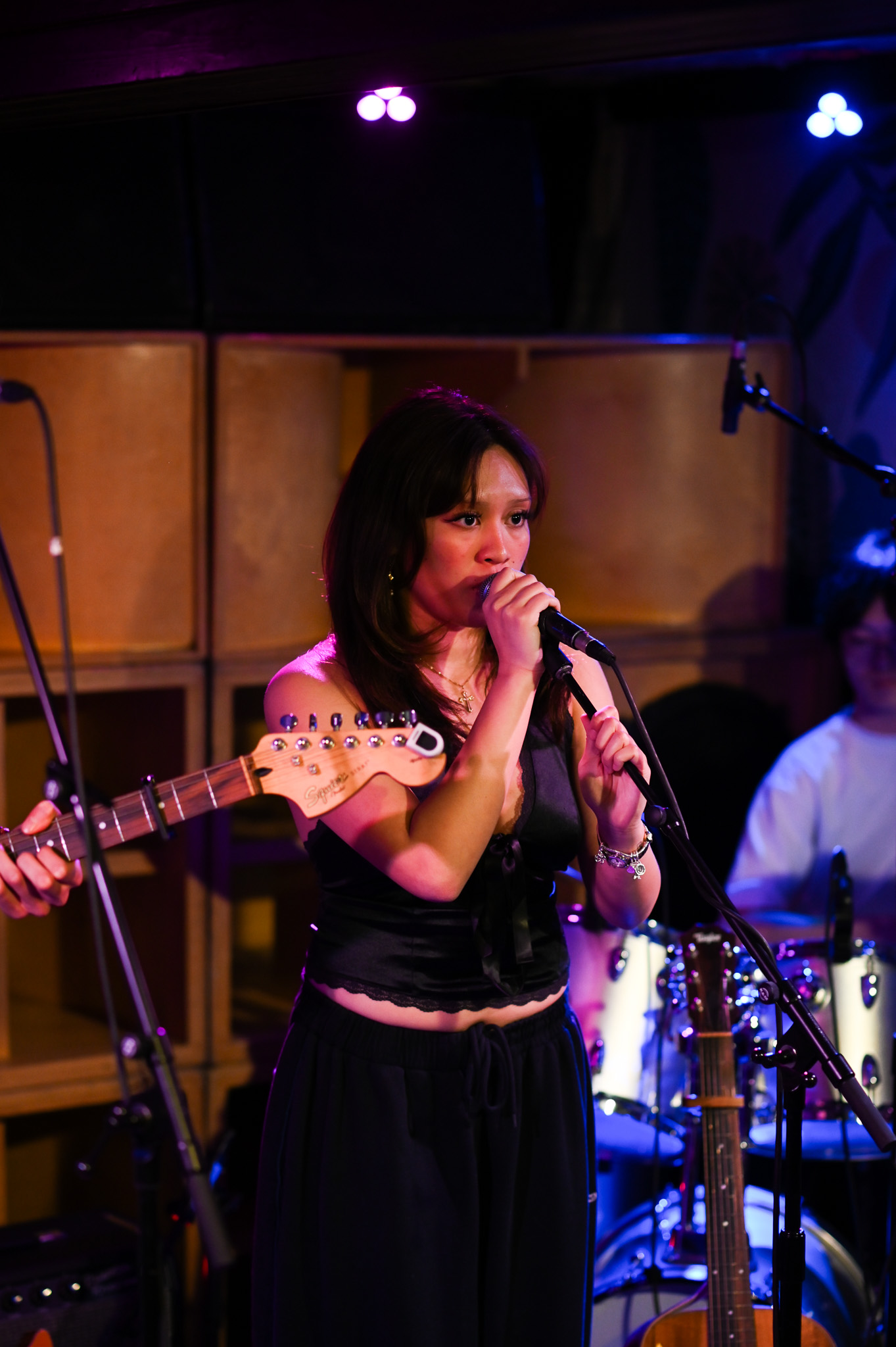 The night kicked off at 8PM with Bianca Espino, accompanied by her band: Ian on guitar and background vocals, Jake on bass, Kane on drums, and Luka on piano. While singing, Bianca alternated between playing her electric and acoustic guitar depending on the song. Despite it being her first performance, she was incredible—you never would have guessed she was nervous.