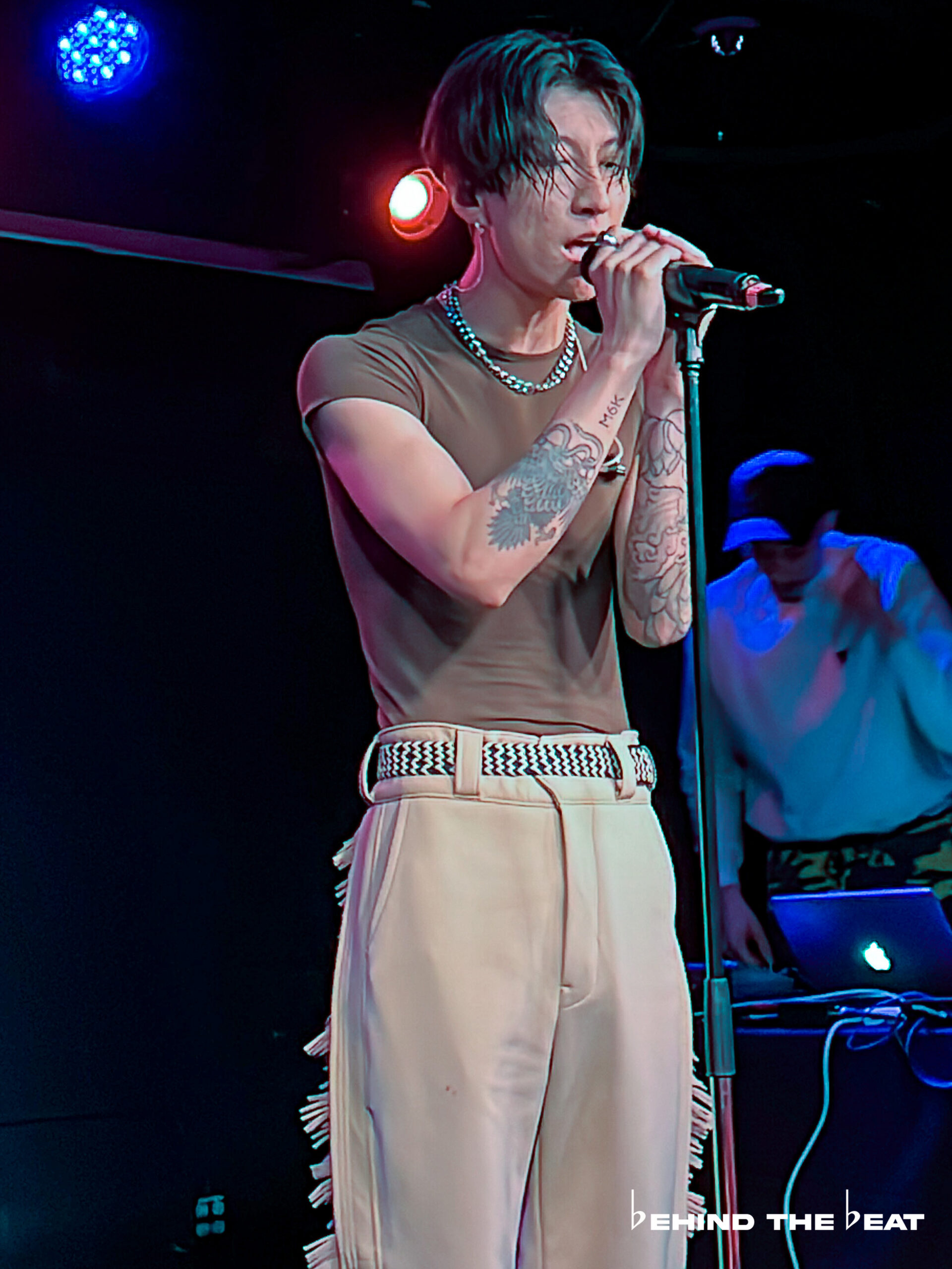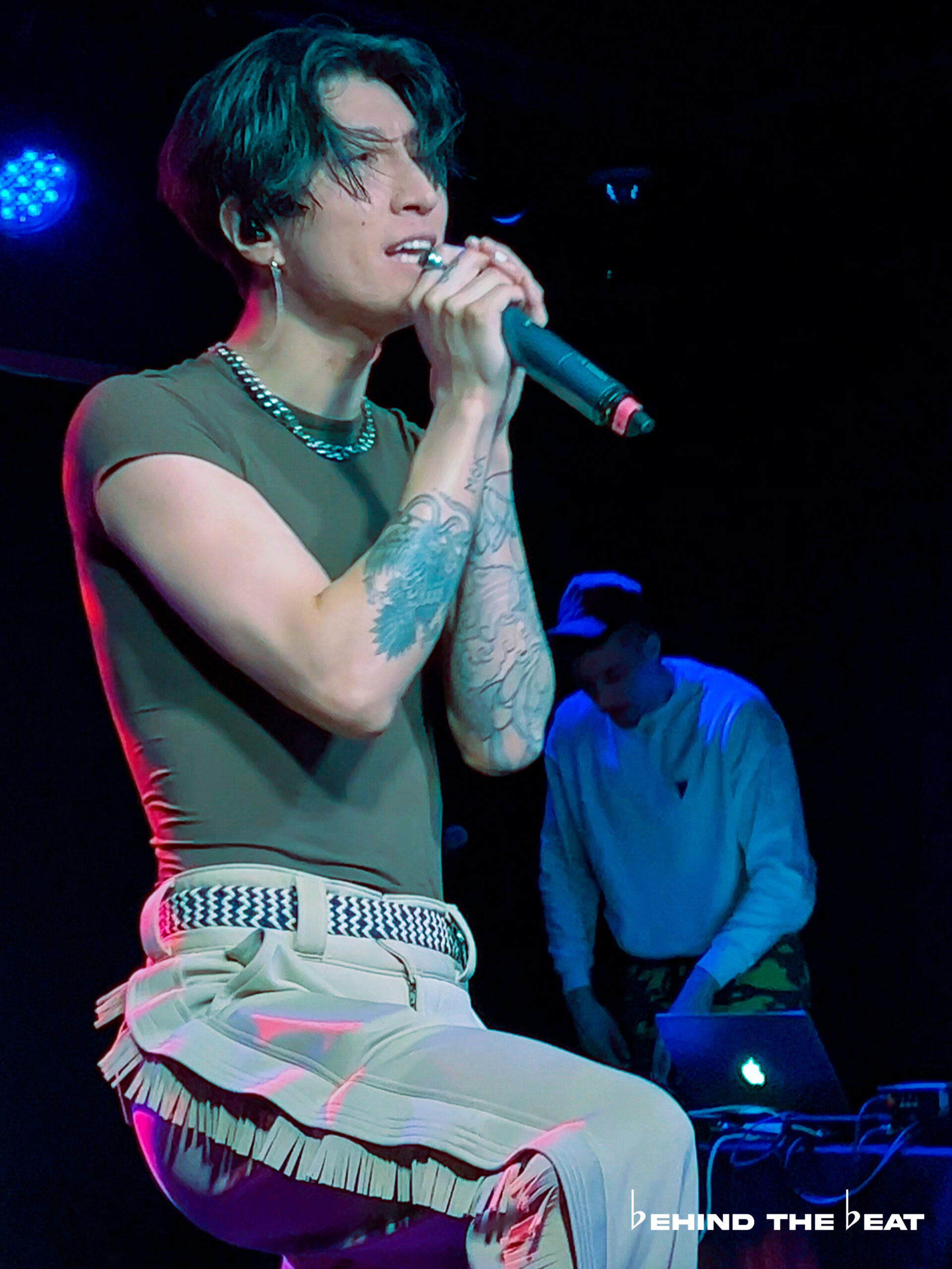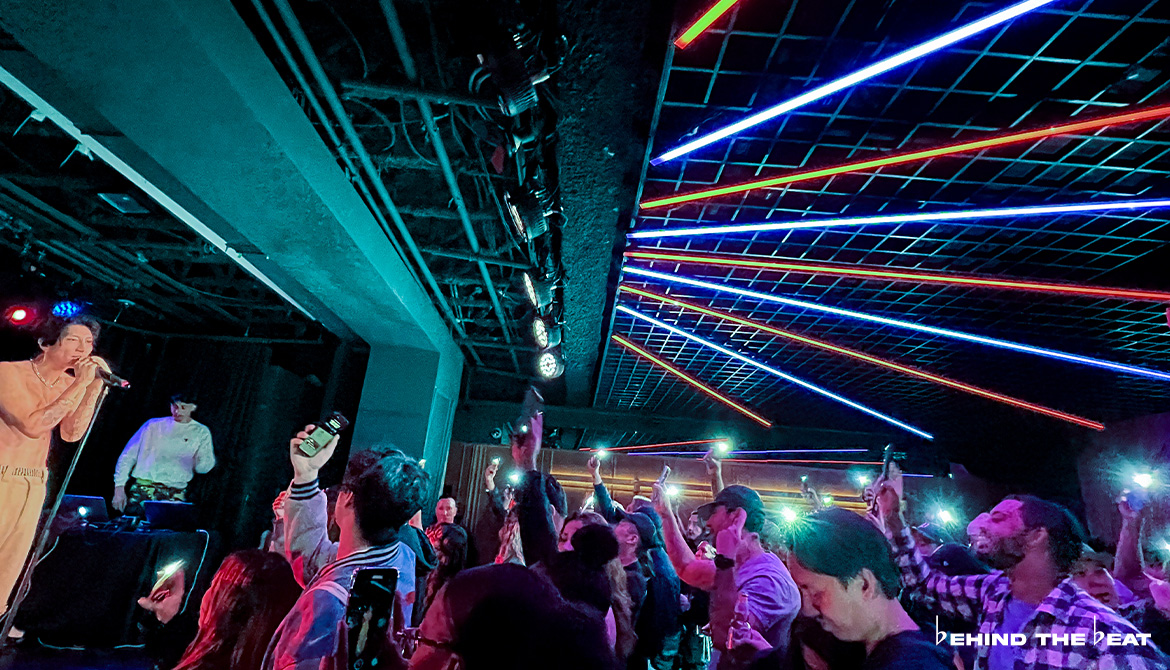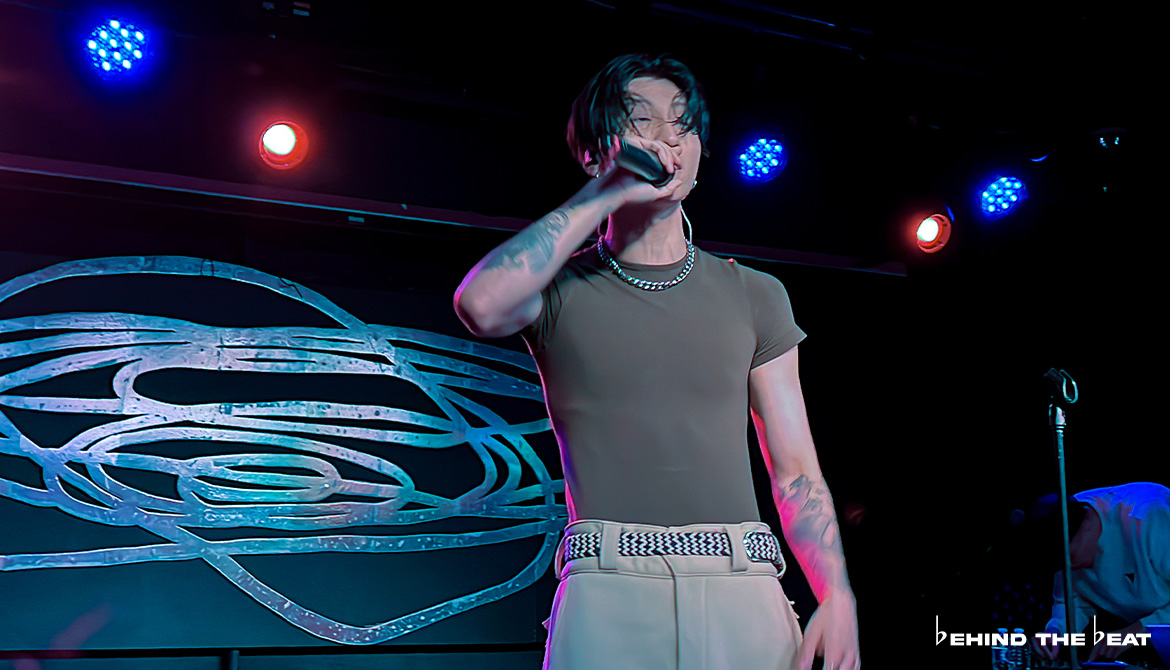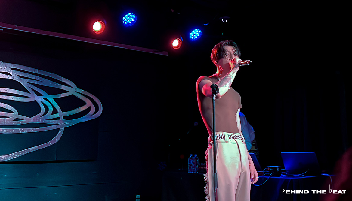 At 8:45 PM, melatonin boy came on stage for his set, accompanied by EXPOSITION’s CEO/Co-Founder Aeon, who was playing the tracks. melatonin boy’s first performance was his latest single from March titled “we know it’s not, babe”. This is currently one of our favourite songs by melatonin boy, so it was amazing to finally be able to see it live. Additionally, the crowd loved it as well.