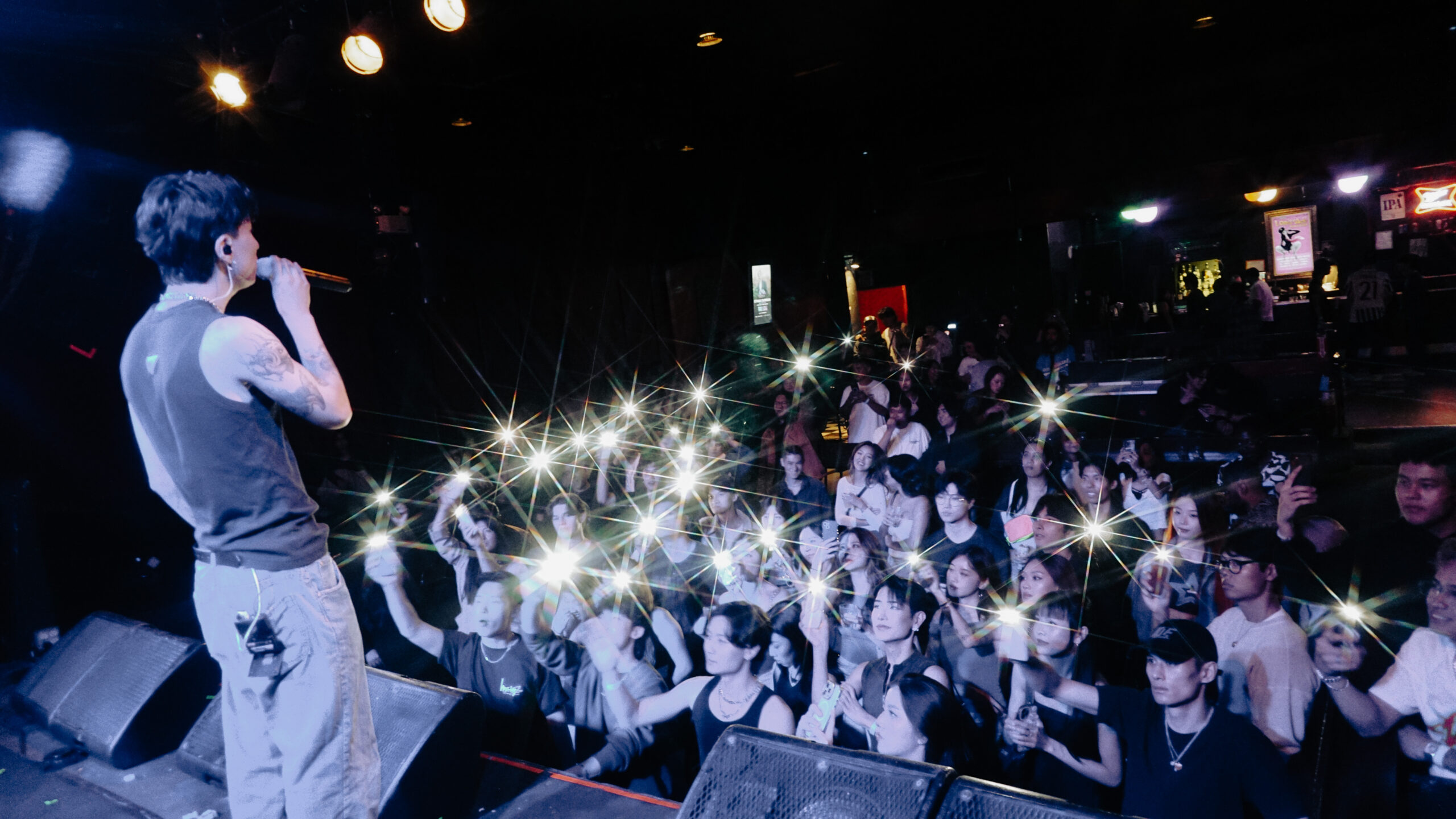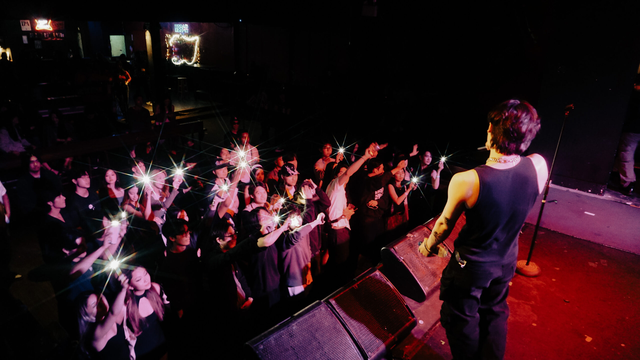 S1NE came on at 9:45 PM for his debut performance. Prior to this show, S1NE had never performed live before and honestly you couldn’t tell. S1NE was so natural on stage – he definitely belongs there. He really got the crowd going and similarly to L8NR, his music is so diverse. S1NE’s discography is still growing so, he played a few unreleased songs and they were beautiful – especially a collaboration song he has with JHIN (which we hope comes out). We are so excited to see S1NE’s next performance this August 13th at our first artist showcase! Get tickets here.
