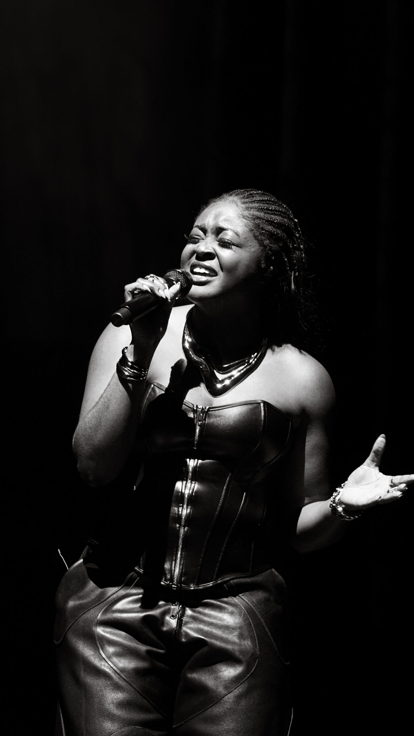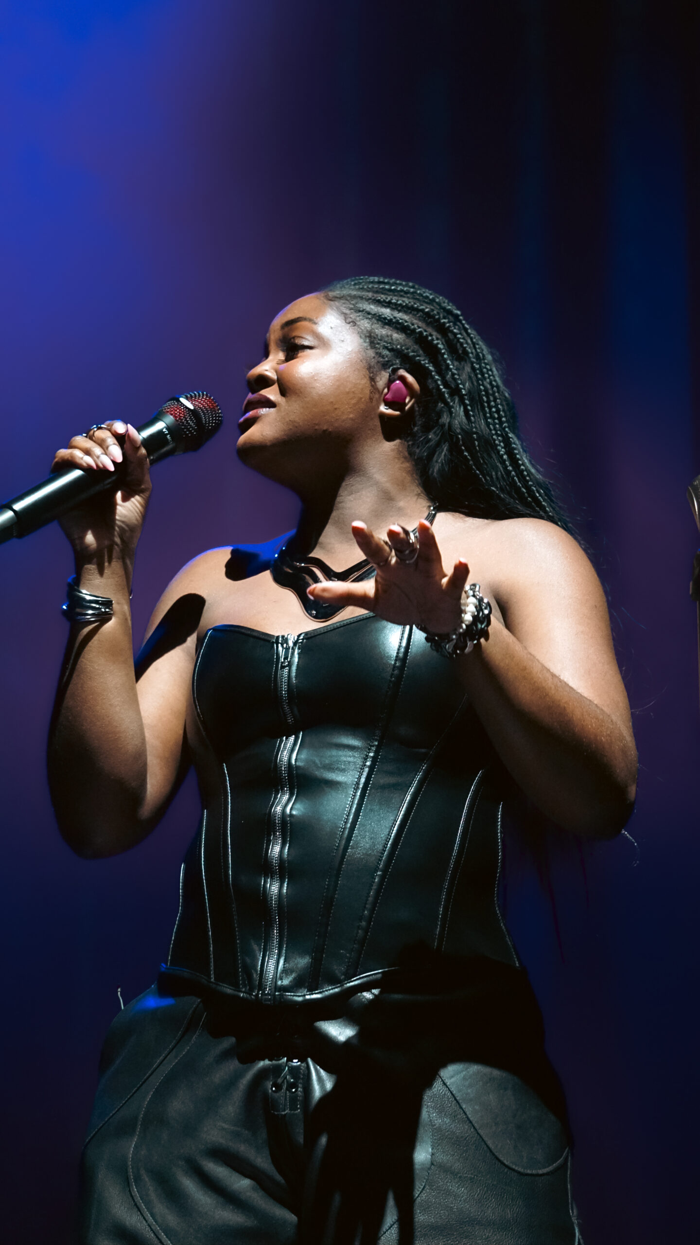 The night kicked off just after 8PM with Aqyila showcasing her powerful and stunning vocal range. Her ability to transition seamlessly from deep, rich lows to soaring highs sent chills through the crowd. She captivated the audience with performances of her hit songs, “Bloom” and “Vibe for Me (Bob for Me),” along with a breathtaking cover of Rihanna’s “Love On The Brain.”