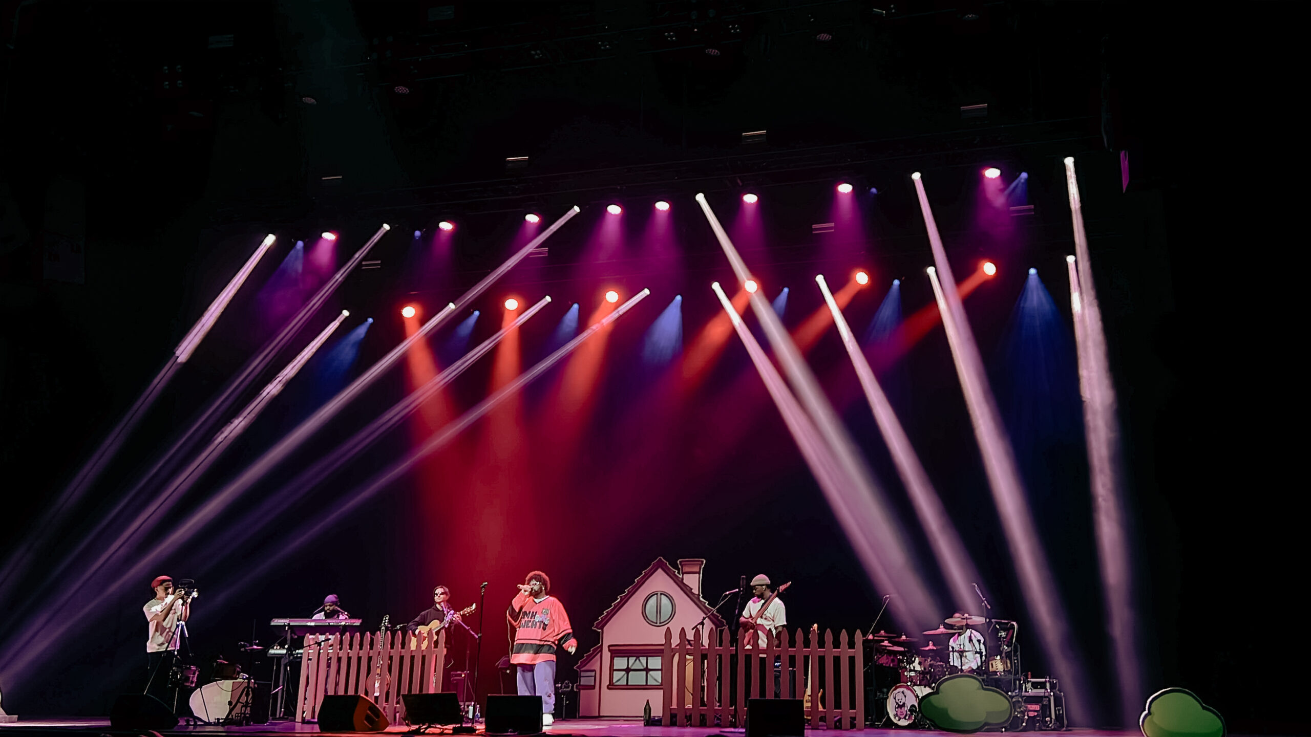 His set design was adorable, featuring a cozy house with a fence and bushes, while his signature bear graphic was placed on the drum kit. His stage presence was unmatched—we’ve never seen an artist interact with a crowd as much as he did. Whether fans were in the front, back, or along the sides, he made sure to connect with as many as possible.